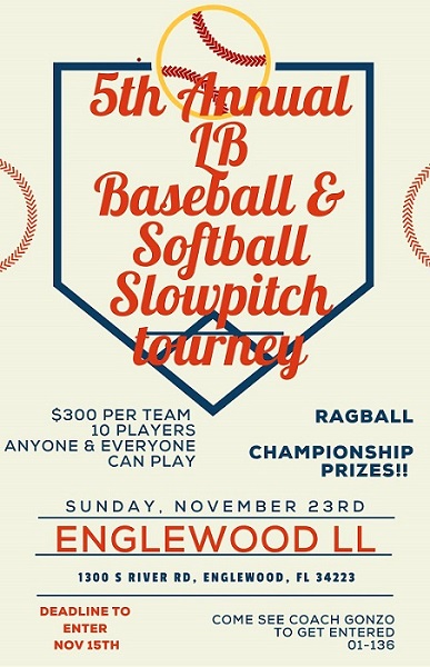 Back by popular demand! The 5th Annual LB Baseball & Softball Slowpitch Tournament will take place Sunday, November 23, at the Englewood Sports Complex, located at 1300 South River Road. The event welcomes everyone to participate offering a fun day of friendly competition.