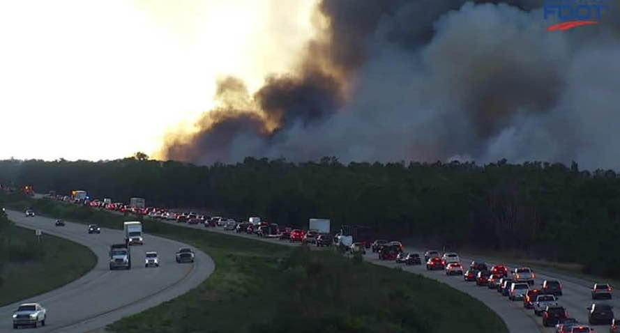 90-Acre Brush Fire Near Charlotte-Lee Line Shuts Down I-75 Lane, Sends Smoke Billowing Across Highway