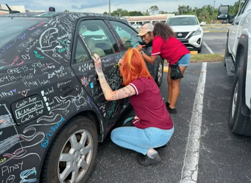 Port Charlotte’s got a new local legend, and his name is Ron Munday. He rolled into town from Arizona and didn’t know a soul, so he did something bold: he turned his old Cadillac into a gigantic chalkboard. Now, anyone can sign it, scribble a drawing, or just leave their mark.