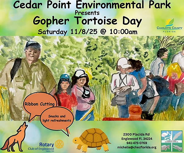 Cedar Point Environmental Park will host “Gopher Tortoise Day” on Saturday, November 8, 2025, at 10 a.m. The public event will include a ribbon-cutting to mark the opening of a new trail dedicated to the native Gopher Tortoise.