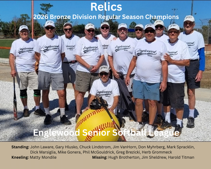 The Englewood Men’s Senior Softball League wrapped up the 2026 winter season in late March with two teams repeating as division champions.