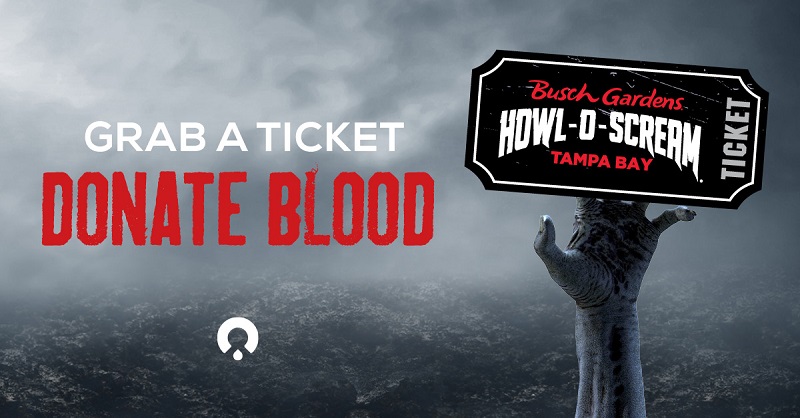 Busch Gardens Tampa Bay and OneBlood are teaming up this October with a special offer for blood donors. Participants who donate blood during select dates will receive a free ticket to Howl-O-Scream and a Halloween-themed T-shirt, while supplies last.