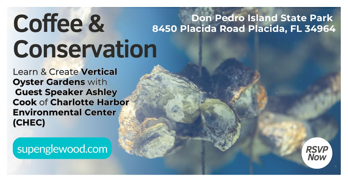 Participants will learn how Vertical Oyster Gardens improve local water quality and then build one during this hands-on session. This unique field event takes place at Don Pedro Island State Park. Please bring closed-toed shoes, sunscreen, bug spray, and a lawn chair.