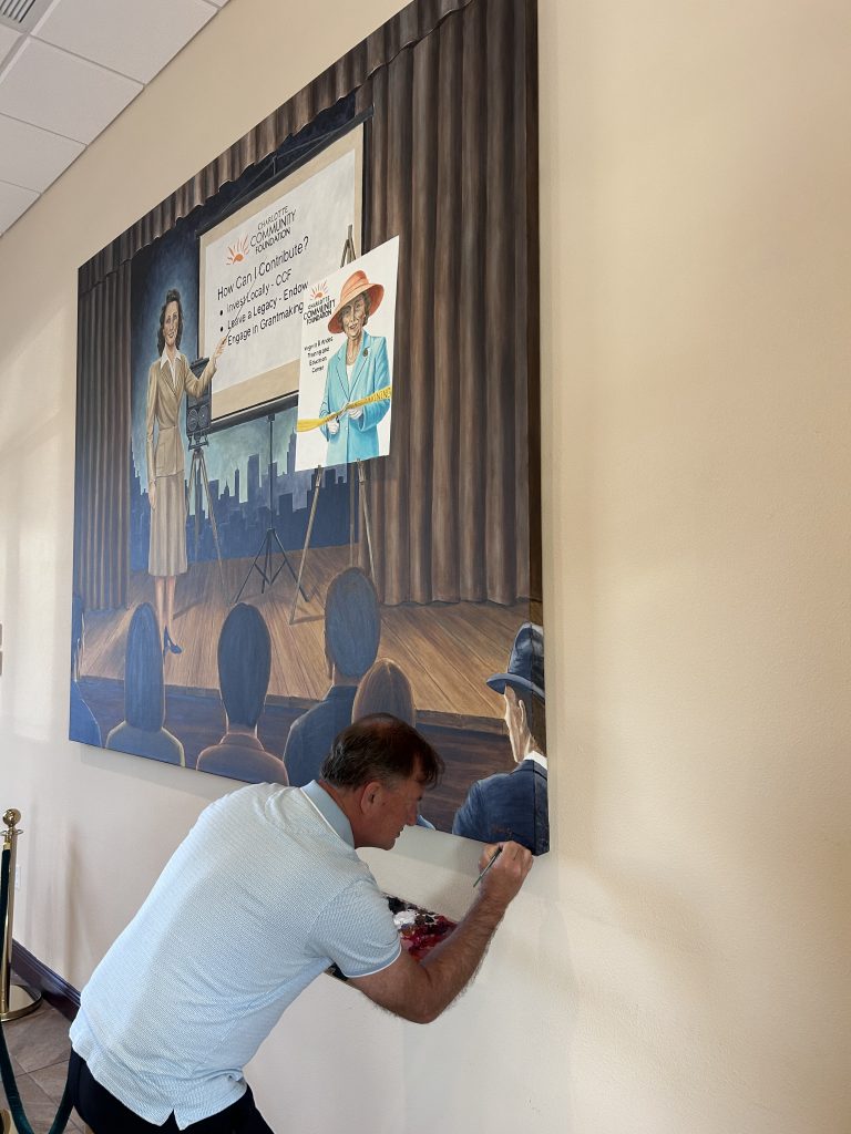 Earlier this year, Robert finished a mural honoring Virginia B. Andes in Punta Gorda. “One of my clients is a board member at their foundation,” Robert explains. “Virginia was a trailblazer. She worked at IBM during WWII, traveled the country as an engineer, and always thought of herself as an educator. After she retired, she volunteered for decades, helping others, leaving an incredible legacy.”