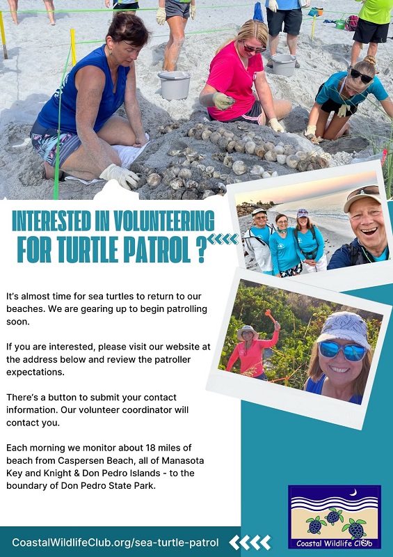 For more information, CoastalWildlifeClub.org/sea-turtle-patrol.