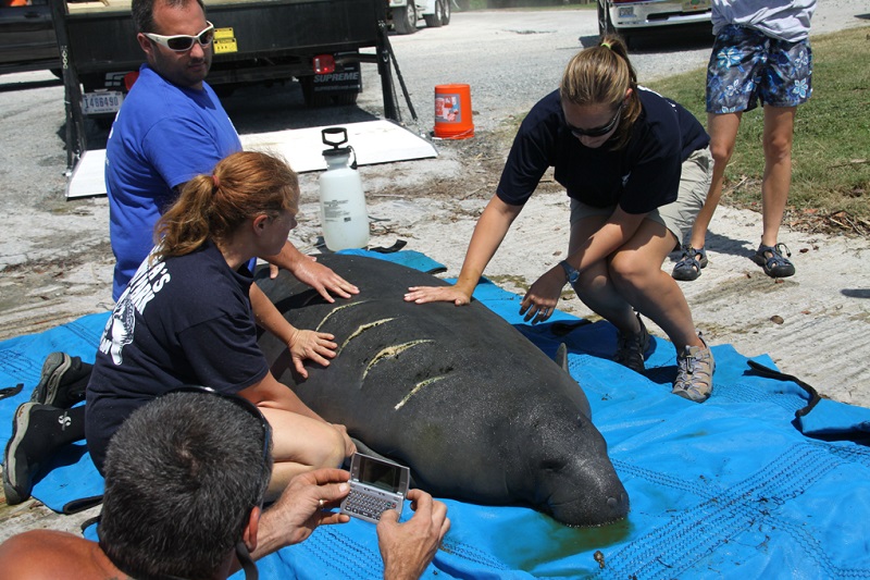 If you see an injured, distressed, sick or dead manatee, report it to the FWC’s Wildlife Alert Hotline at 888-404-FWCC (3922) so that trained responders can assist. Do not try to physically handle an injured or sick manatee yourself, which can cause more harm to the animal and potentially put you at risk of serious injury.