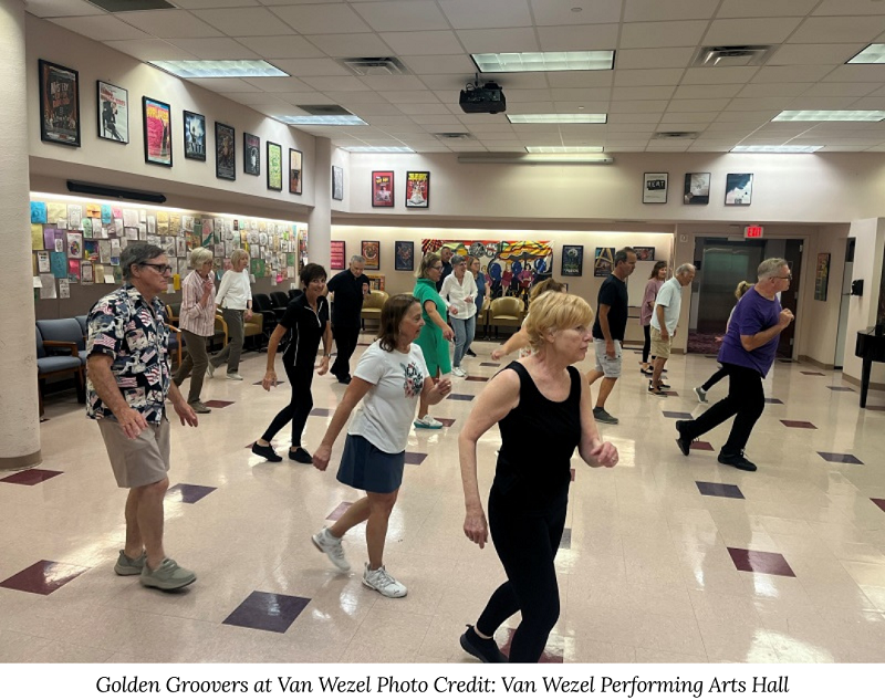 Curious how these classes work or what makes them special? Check out the recent podcast episode featuring Education and Community Engagement Director Justin Gomlak chatting with instructor Deb Lombard about the philosophy behind Golden Groovers and how it impacts senior participants. You can find Curtain Call Conversations: A Van Wezel Podcast online.