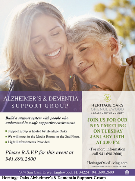 Interested in joining the support group? RSVP by calling 941-698-2600. Want to learn more about Heritage Oaks and their approach to memory care? Visit their website for details at heritageoaksliving.com.