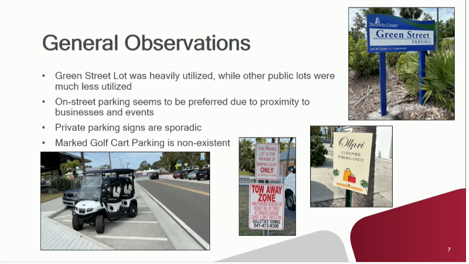 The studies were prompted by board direction in late 2024 following concerns about parking availability during peak seasons and special events. The Englewood CRA Advisory Board has previously reviewed the same material and recommended a parking garage.