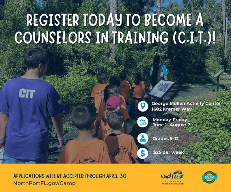 Applications are open until April 30. Submit yours in person at the Morgan Family Community Center or the George Mullen Activity Center. Interviews happen the week of May 4. Download the application at NorthPortFL.gov/CIT and get started. Your future self will thank you.