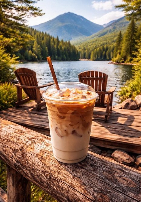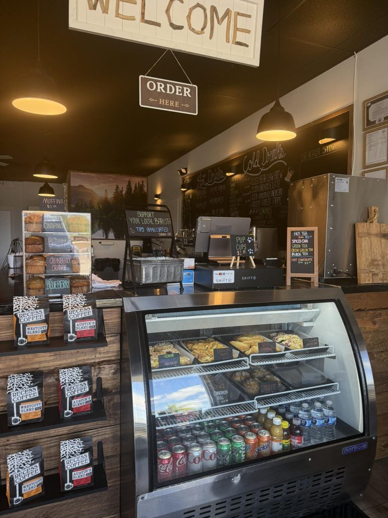 On the menu, you’ll find coffee (hot or iced), pastries, muffins, bagels, breakfast sandwiches, and a whole bunch of “Around the Mountain” refreshers. She’s got teas, chai, and all the coffee shop staples, but with fun mountain twists: Lakehouse Lattes, Adirondack Americanos, Bear Claw Brew, Mountain View Macchiatos, Early Trail Espresso. Every name’s got a story.