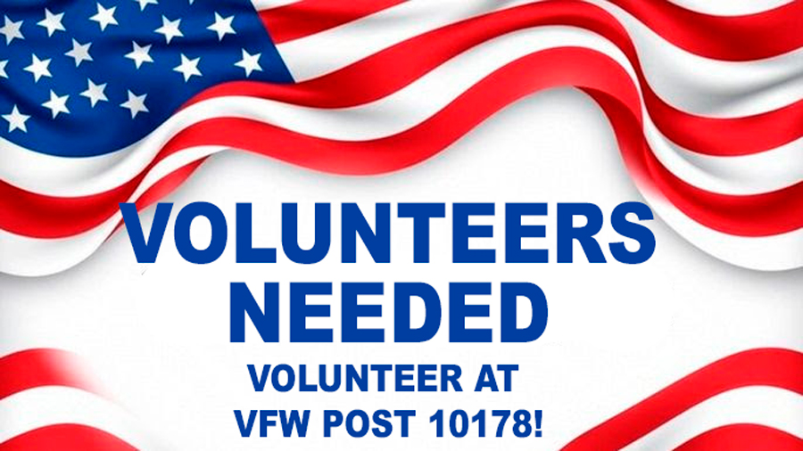 VFW Post 10178 is seeking volunteers in support of local veterans and ongoing post activities. The post and its auxiliary are seeking positive, energetic individuals willing to contribute time and talents across a range of projects and events.