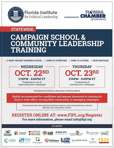Developed by the Florida Institute for Political Leadership, a Florida Chamber initiative, the two-day course provides participants with a comprehensive overview of state and local issues, guidance on preparing for public service, and training on effective campaign strategies. Sessions will be led by political experts, elected officials, professors, and community leaders.